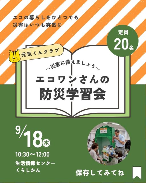 9月18日(木)開催 エコワンさん防災学習会~災害に備えましょう~