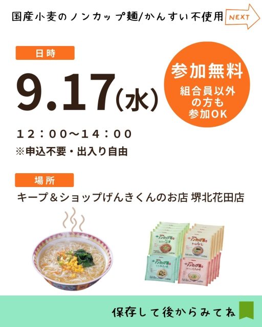 9月17日(水)開催 トーエー食品来店イベント『ノンカップ麺』試食&販売会