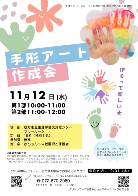 11月12日(水)開催 親子で楽しもう♪手形アート作成会