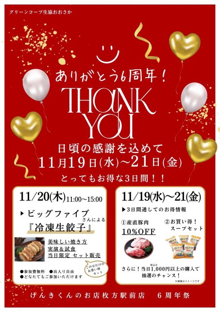 11月19日(水)~21日(金)開催 げんきくんのお店枚方駅前店6周年祭