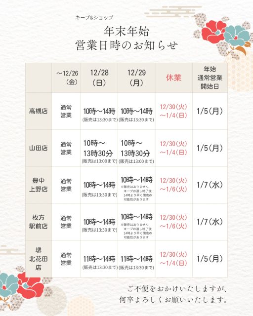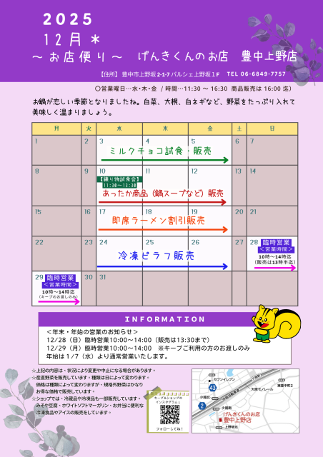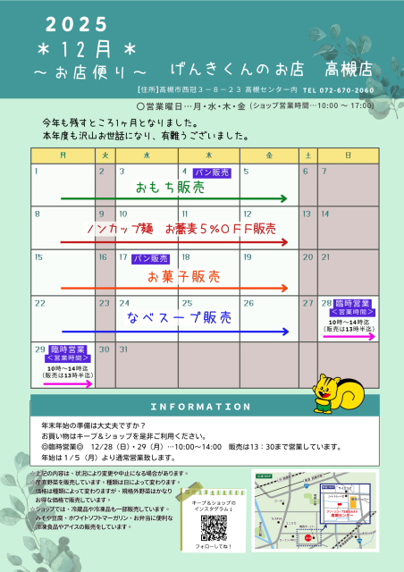 げんきくんのお店キープ&ショップ12月の予定 げんきくんのお店 キープ&ショップ 12月の予定です 【キープ&ショップ年末年始の 営業についてお知らせ】 年末年始は、営業日時が 通常とは異なります。 ご迷惑をおかけいたしますが ご理解のほど よろしくお願いいたします。