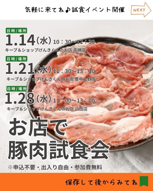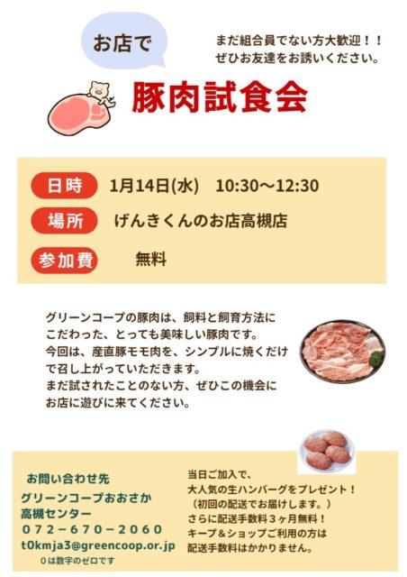 1月14日(水)お店で豚肉試食会 げんきくんのお店高槻店