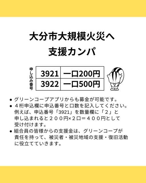 【緊急支援募金のお願い】大分市佐賀関で発生した大規模火災