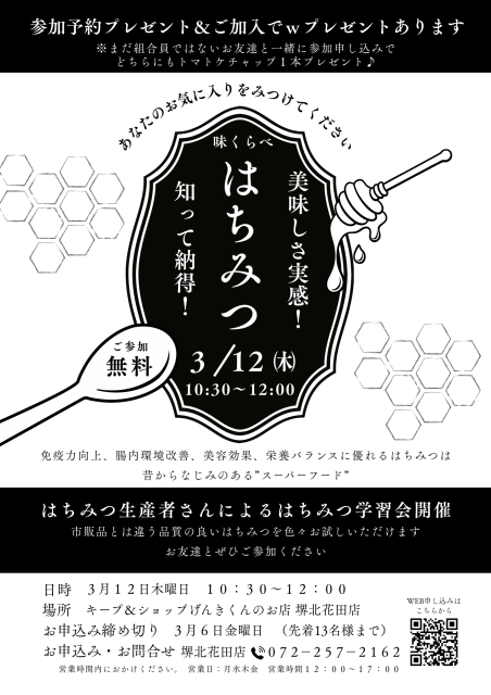 3月12日(木)開催 美味しさ実感!知って納得!はちみつ学習会